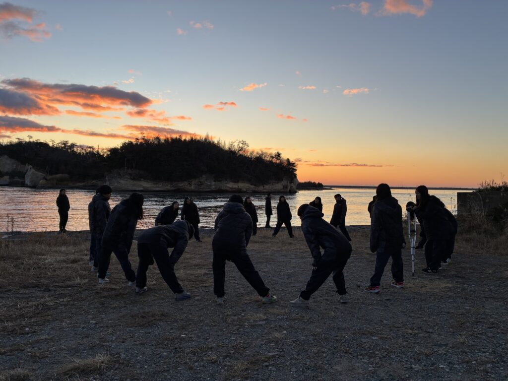 岩手よりは寒さは和らいでいるものの、朝はマイナスの気温でした。朝焼けに染まる空の下、体操を行いながら静かに気持ちを整えます。