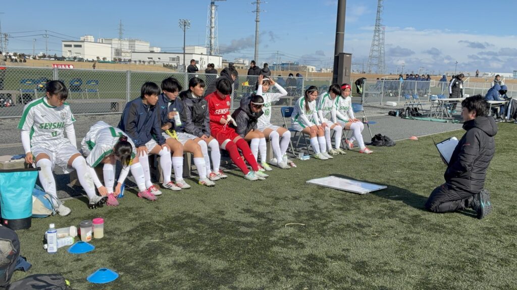ゴールはなかなか遠いものの、着実に相手ゴールへ近づき、前半は0-0で折り返しました。
