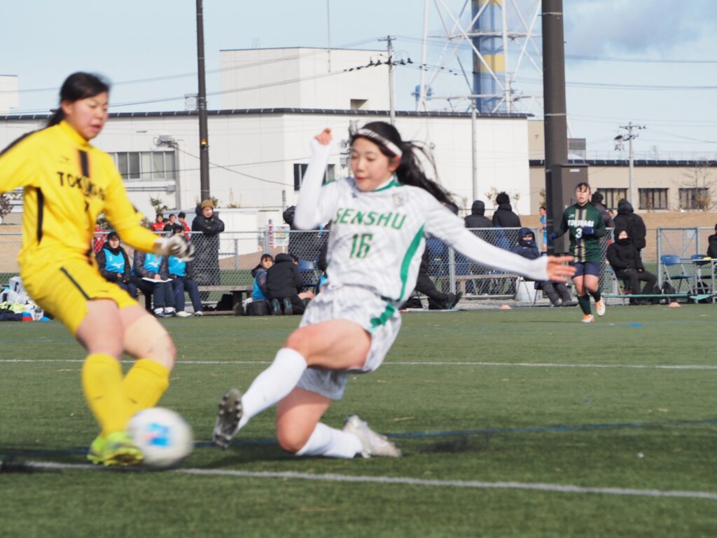 専修大学北上高等学校女子サッカー部です。創部30年以上の歴史を持つクラブで、北上市という地域の方々から様々なご支援をいただき、通算8回の高校女子サッカー選手権大会への出場を果たすことができました。これからも地域の方々に少しでも元気や感動のお返しができるよう練習に励んでまいります。