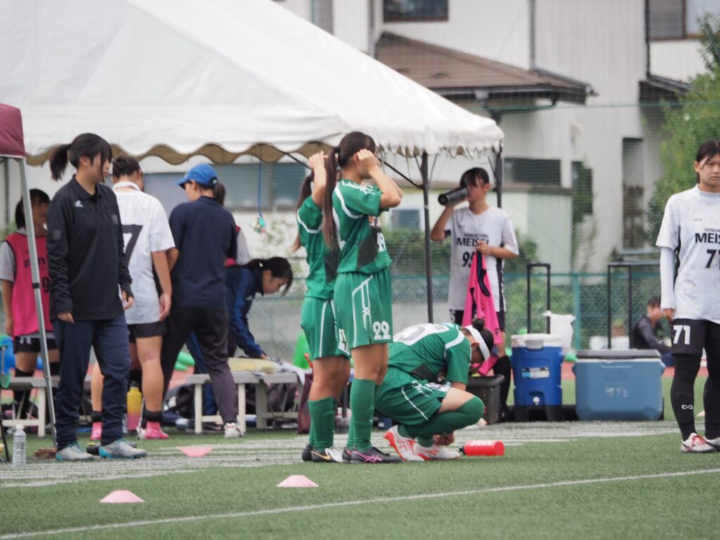 すると前半35分、明成高校さんの左サイド攻撃からシュートを決められ、2-1に。