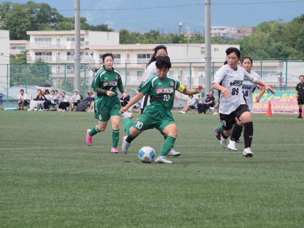 後半も積極的に攻め、相手陣地でパスを回してチャンスを狙います。前半よりも良い動きが見られる展開になります。